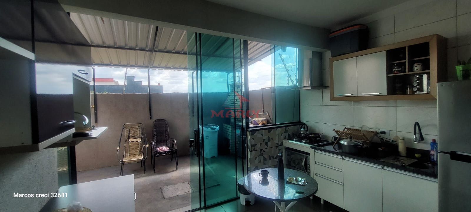 - Cozinha com janelas e portas em blindex